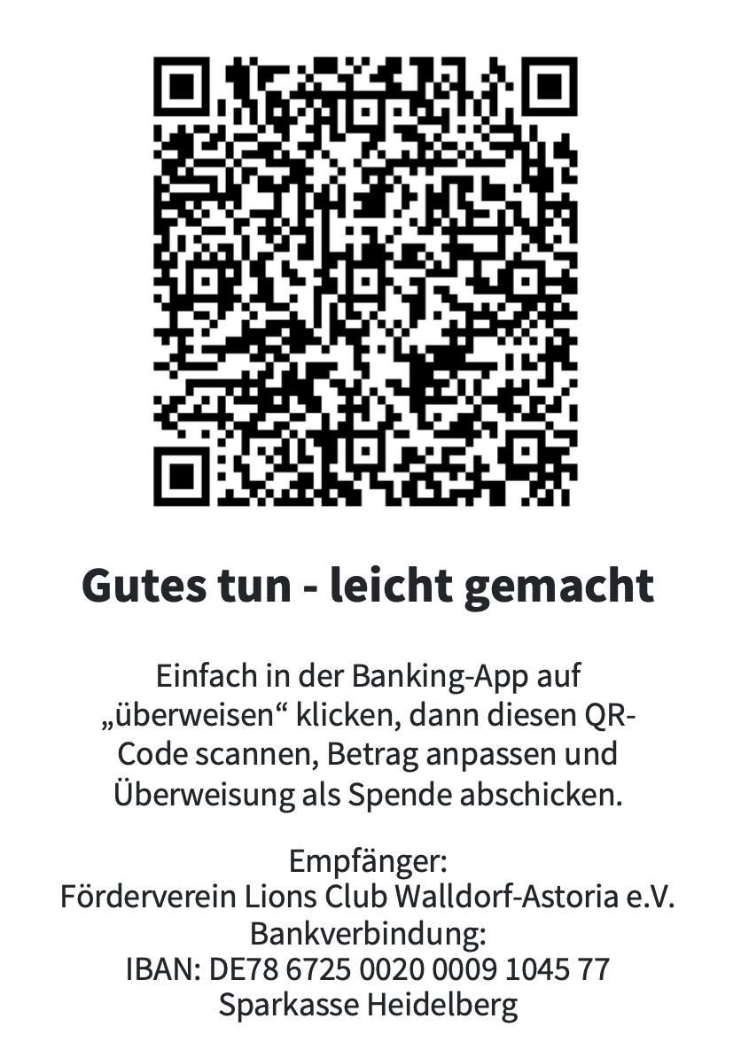 Möchten Sie unsere Arbeit unterstützen und Gutes für die Region tun? Dann haben Sie die Möglichkeit, ganz unkompliziert über unseren QR-Code zu spenden – bequem und sicher mit Ihrem Smartphone.
